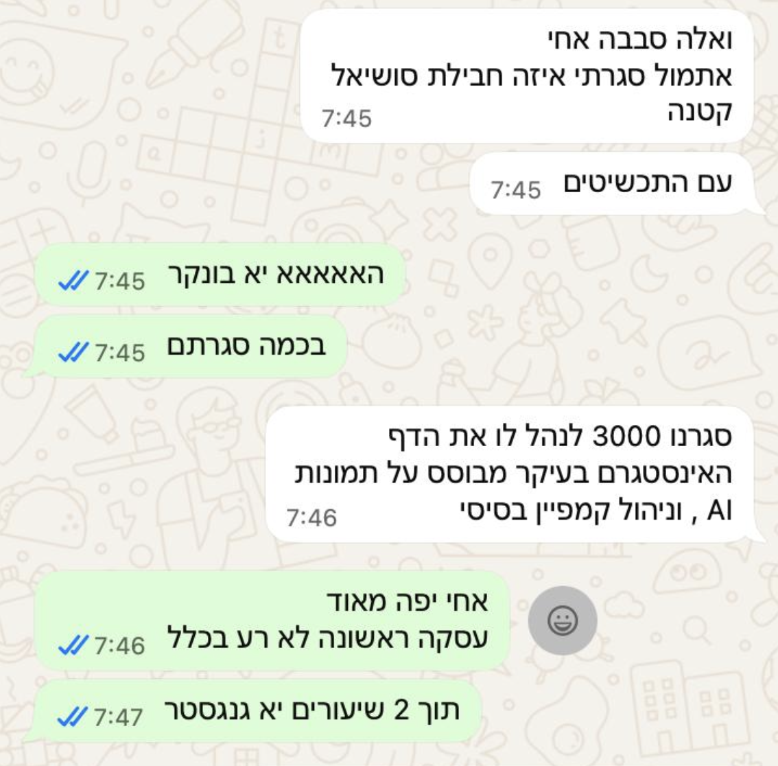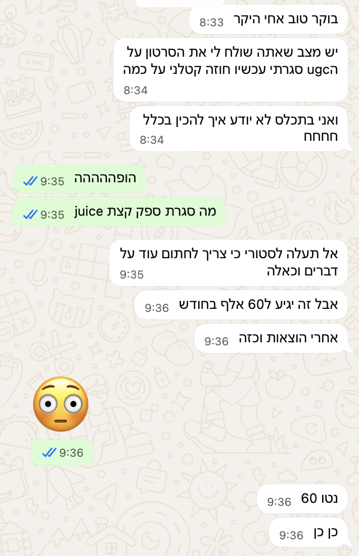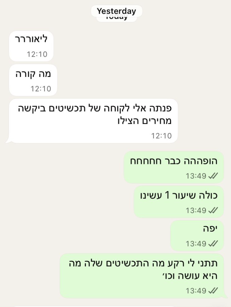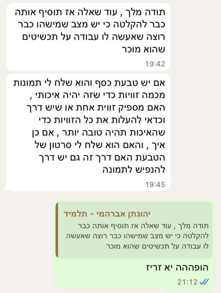 והחזיר את ההשקעה בליווי תוך חודש(!!!). היום הוא משתמש ב-AI באופן קבוע, עם עסקים ומותגים גדולים שאת חלקם כולנו מכירים.