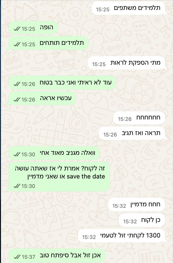 מענה מהיר לשאלות, הכוונה ותמיכה לאורך כל התהליך, גם בין השיעורים.